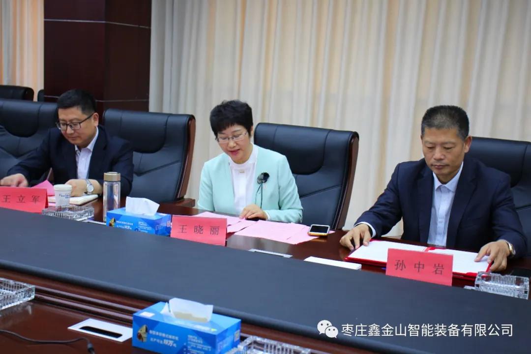 會議由臺兒莊區副區長王曉麗主持。臺兒莊區委常委、組織部部長,區招才引智專班組長王立軍,區科技局局長王友峰,棗莊鑫金山智能裝備有限公司董事長孫中巖,以及區委組織部人才科和區科技局相關負責人出席鑫金山會場簽約儀式。