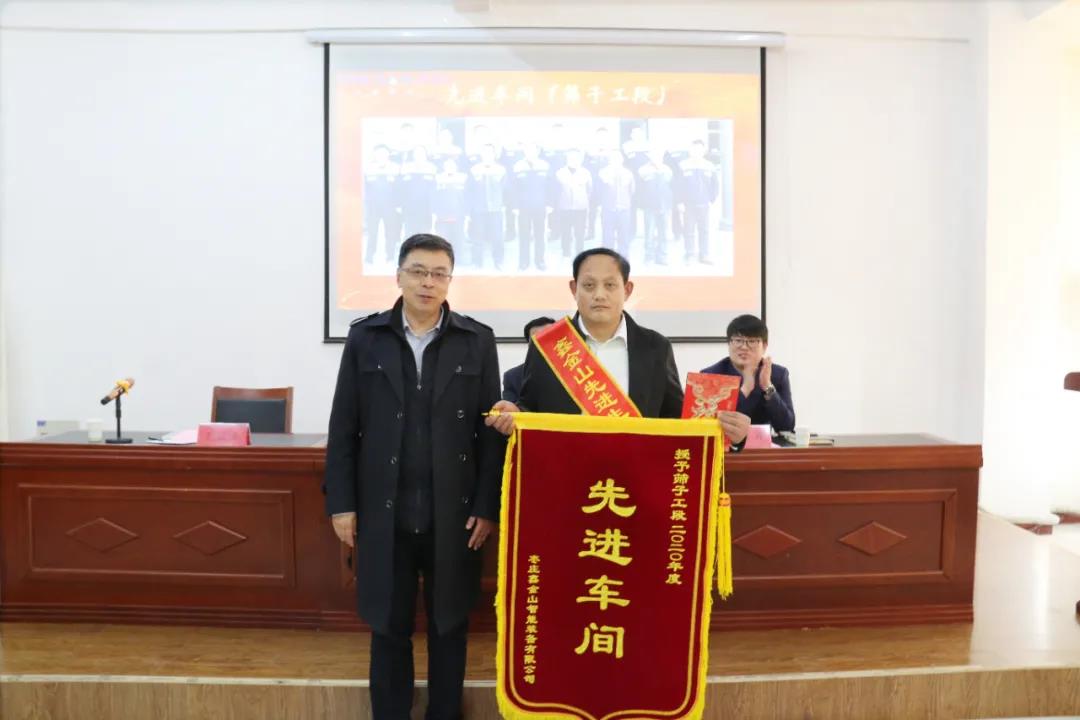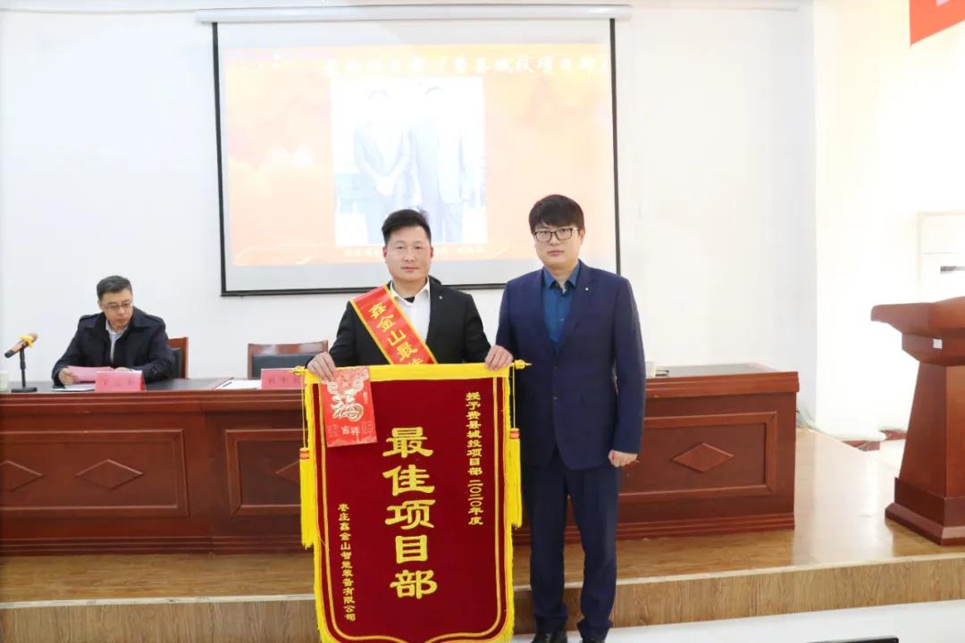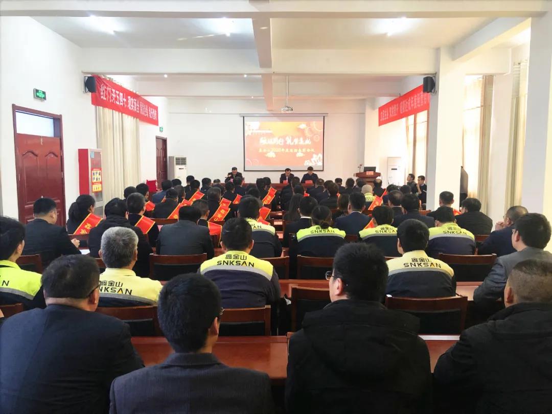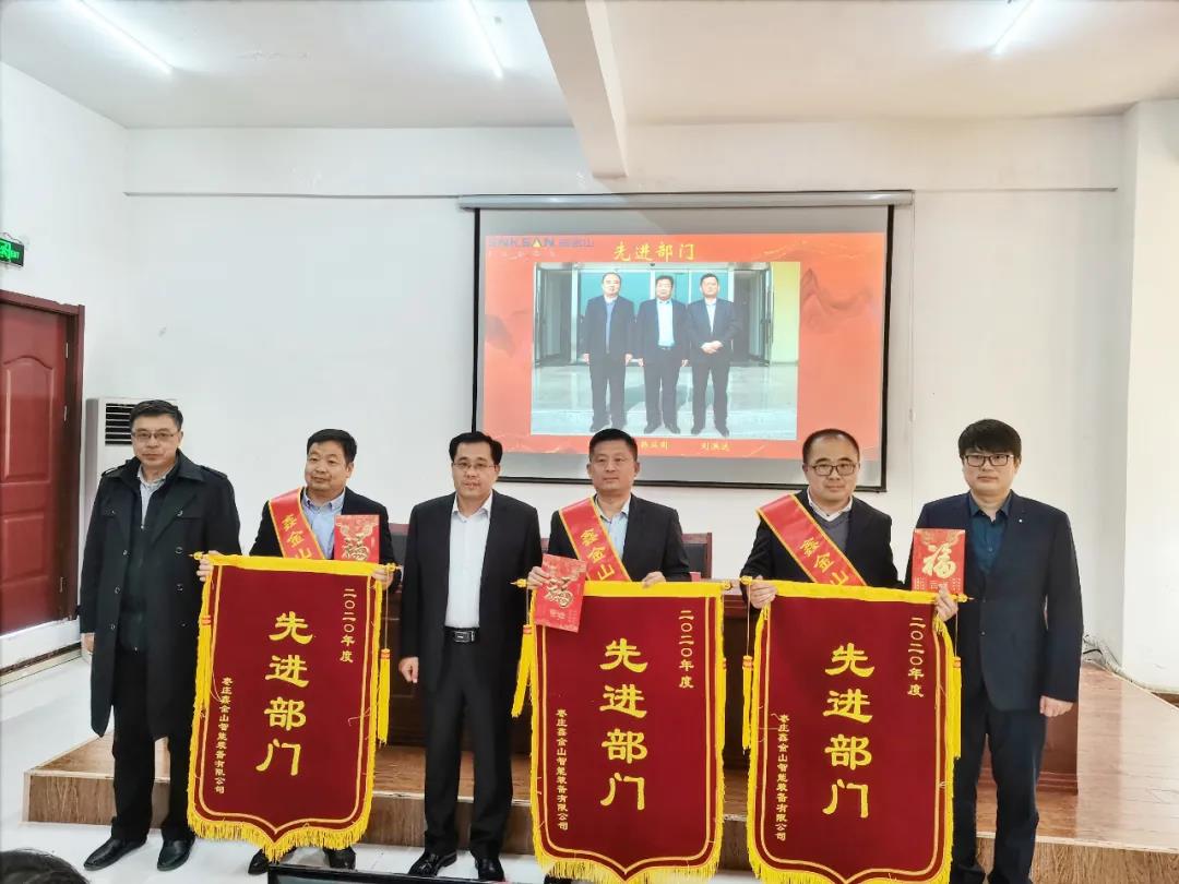 2021年2月5日下午,棗莊鑫金山智能裝備有限公司在總部隆重召開以“砥礪前行·筑夢遠航”為主題的2020年度總結表彰大會。全面總結公司2020年工作成績和經驗,表彰先進集體和個人,分析當前形勢和存在不足,研究部署2021年公司總體工作目標和重點工作任務。