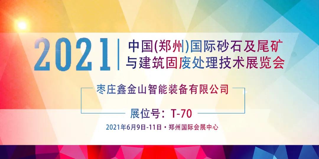 導(dǎo)讀:為了交流行業(yè)新技術(shù),共謀未來(lái)發(fā)展新趨勢(shì)。“2021中國(guó)(鄭州)國(guó)際砂石及尾礦與建筑固廢處理技術(shù)展覽會(huì)”將于6月9日—11日在鄭州國(guó)際會(huì)展中心隆重舉行,棗莊鑫金山智能裝備有限公司作為本次展會(huì)主贊助商誠(chéng)邀您參加。