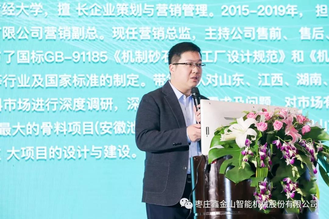 鑫金山運營總監(jiān)胡總在大會上作《如何根據(jù)guojia要求打造符合標(biāo)準(zhǔn)的綠色砂石礦山》的主題報告,介紹了鑫金山智能機(jī)械的基本情況及高效能短流程綠色骨料線的核心優(yōu)勢,并對綠色礦山建設(shè)提出了看法,胡總表示,綠色礦山需要具備生態(tài)環(huán)保、開采科學(xué)、利用高效、管理規(guī)范和礦地和諧等特點。同時,從設(shè)備配置、工藝設(shè)計、建設(shè)方式、現(xiàn)代化運營等方面著重對鑫金山年產(chǎn)1500萬噸精品砂石骨料線進(jìn)行了詳細(xì)講解。