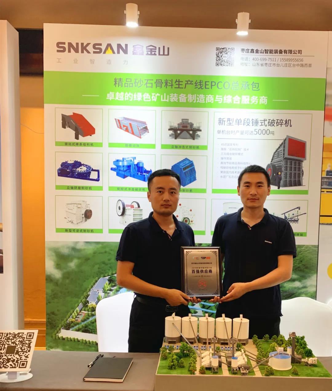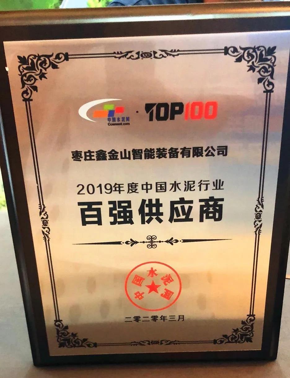 為棗莊鑫金山智能裝備有限公司頒發了“百強供應商”獎,該榮譽的獲得是行業對鑫金山的認可,鑫金山將會持續不斷加強技術創新,提升服務質量,為助推水泥行業健康可持續發展,實現產業鏈延伸做出更大的貢獻!